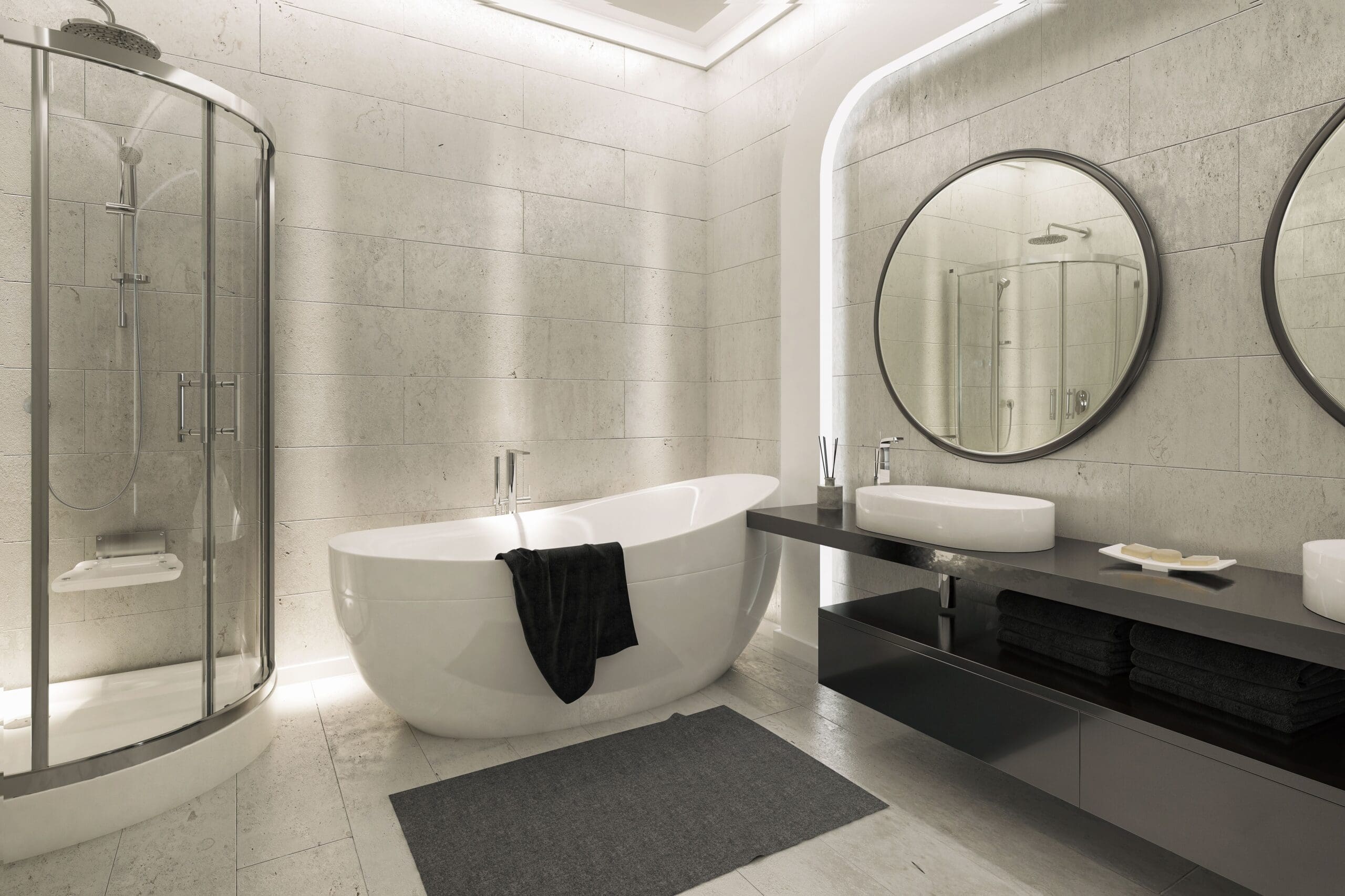 If you have the floor space, invest in a freestanding bathtub (and don’t forget the bathtub caddy!). For the ultimate spa-like experience, place the tub near a window for natural light. If that’s not possible, surround it with plants and candles. A good rule of thumb is to allow at least one foot of space between the bathtub and the walls/vanity.